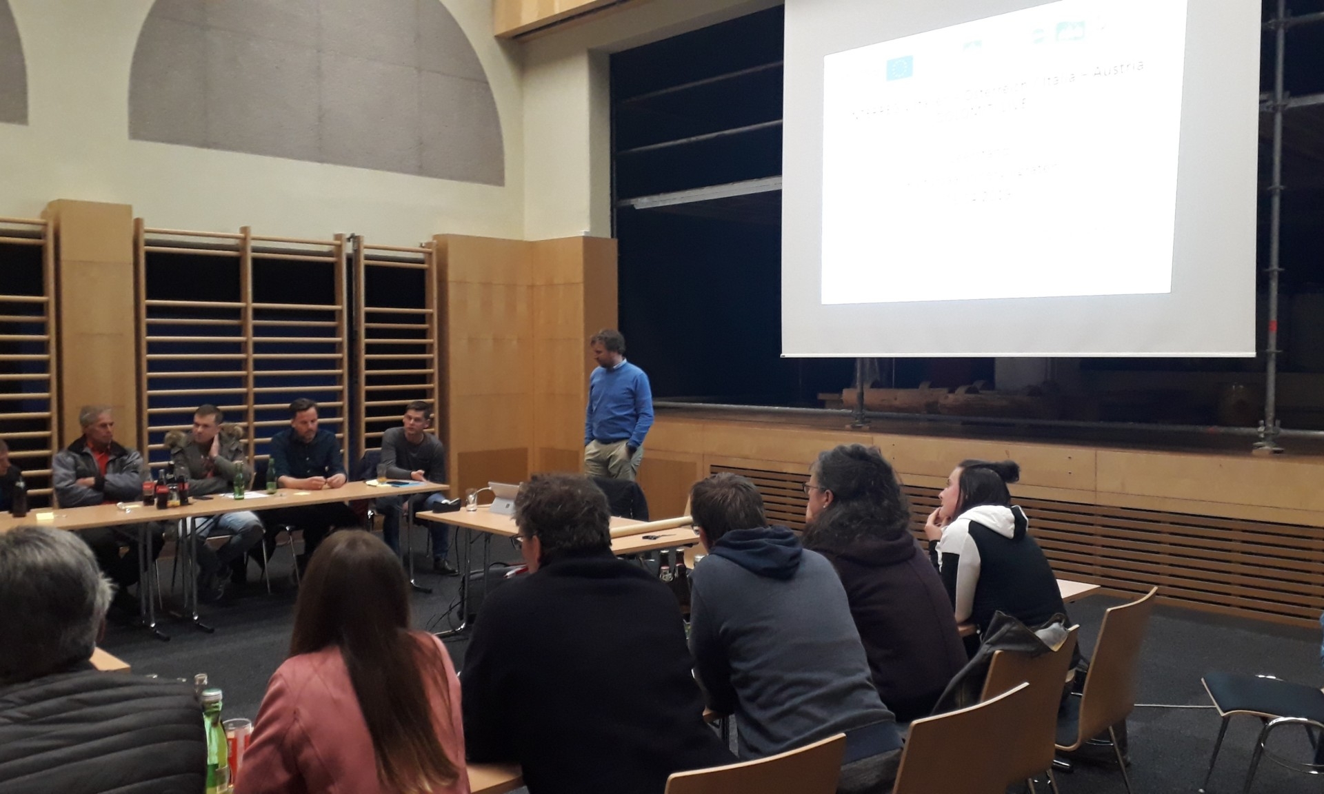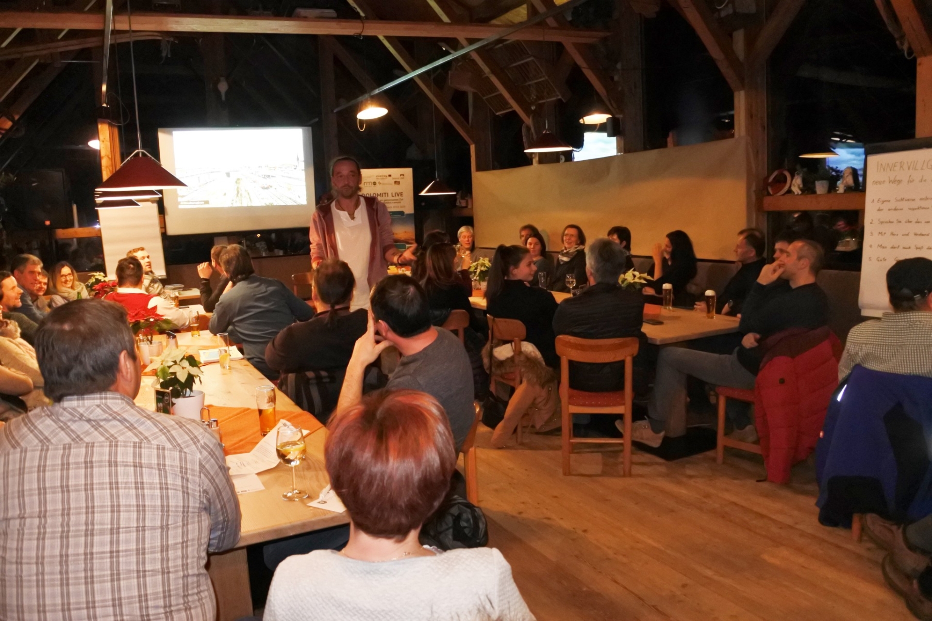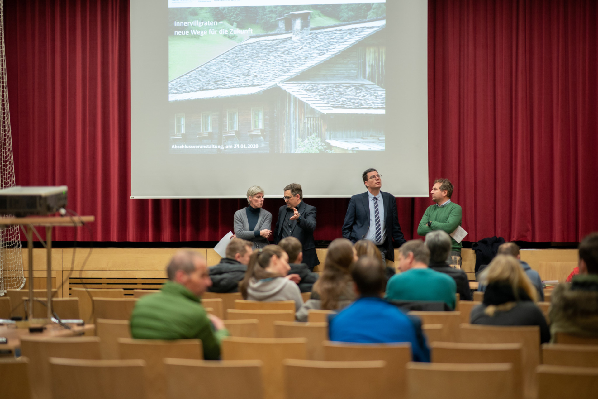 Am Freitag fand die Abschlussveranstaltung in Innervillgraten statt. Begrüßt wurden die Teilnehmer durch Bgm. Lusser und Bgm. Steger (Gemeinde Prettau). Anschließend gab es einen Impulsvortrag von Matthias Fink. Danach wurden die Ziele und der Ergebnisse der Bürgerbeteiligung und der Studie von Bernhard Grüner präsentiert.